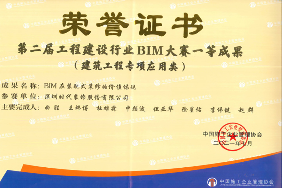 2、BIM獲獎:我司始終關注BIM技術體系的研發與應用,在2021年期間共獲得“第二屆工程建設行業BIM大賽建筑工程專項應用類一等成果”、“建筑裝飾BIM大賽應用水平二級”、“智慧建造應用大賽裝配式優秀案例——銀獎”、“新基建杯裝配式技術應用優秀案例賽組——二等獎”等多個獎項。