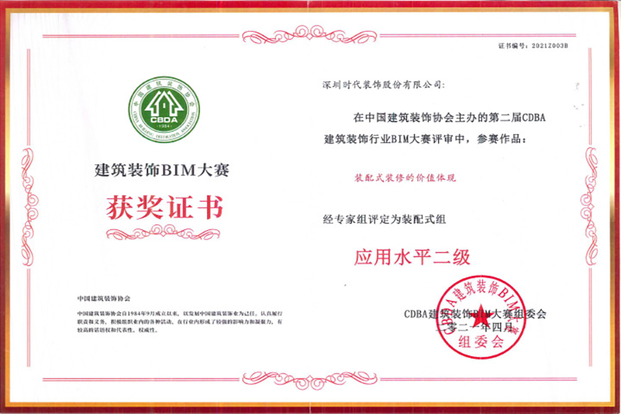 時代裝飾通過不斷的發展與實踐,積累了豐富的裝配式裝修經驗,在2021年,申報裝配式相關專利及工法等30余項,并憑借專業的裝飾施工能力及先進的技術研發水平榮獲2021年國家級、省級建筑裝飾行業科技工程獎、科技創新成果獎近10項,充分展現了我司不斷進取、刻苦鉆研、追求創新的精神風貌。